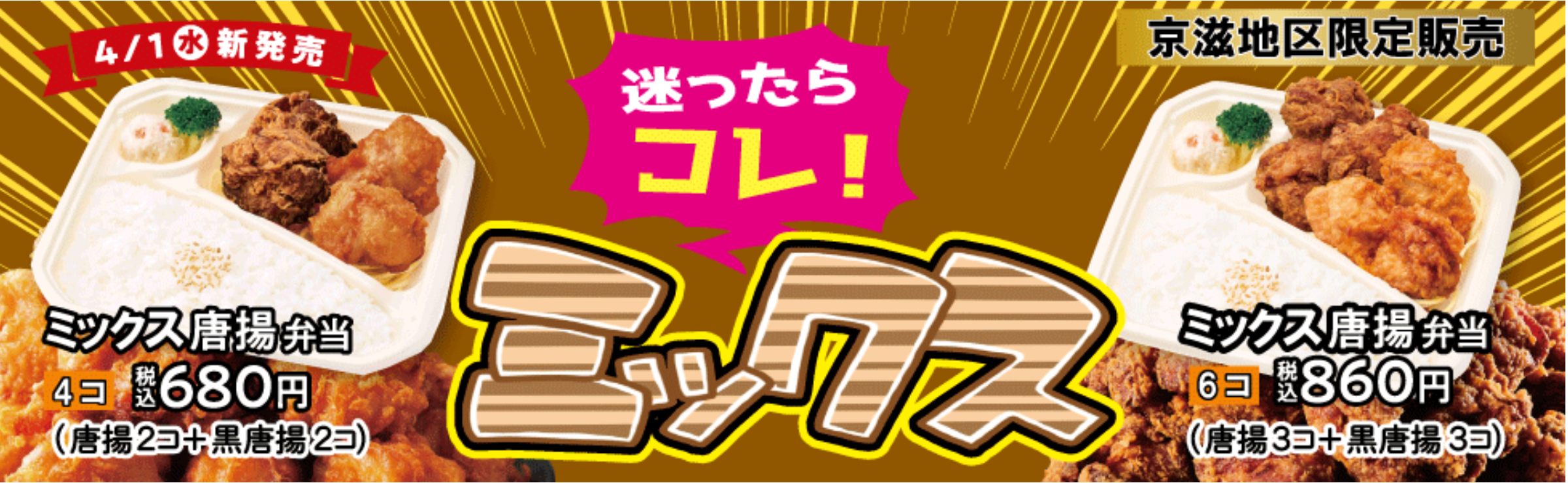 京都・滋賀エリア限定「ミックス唐揚弁当」期間限定発売!