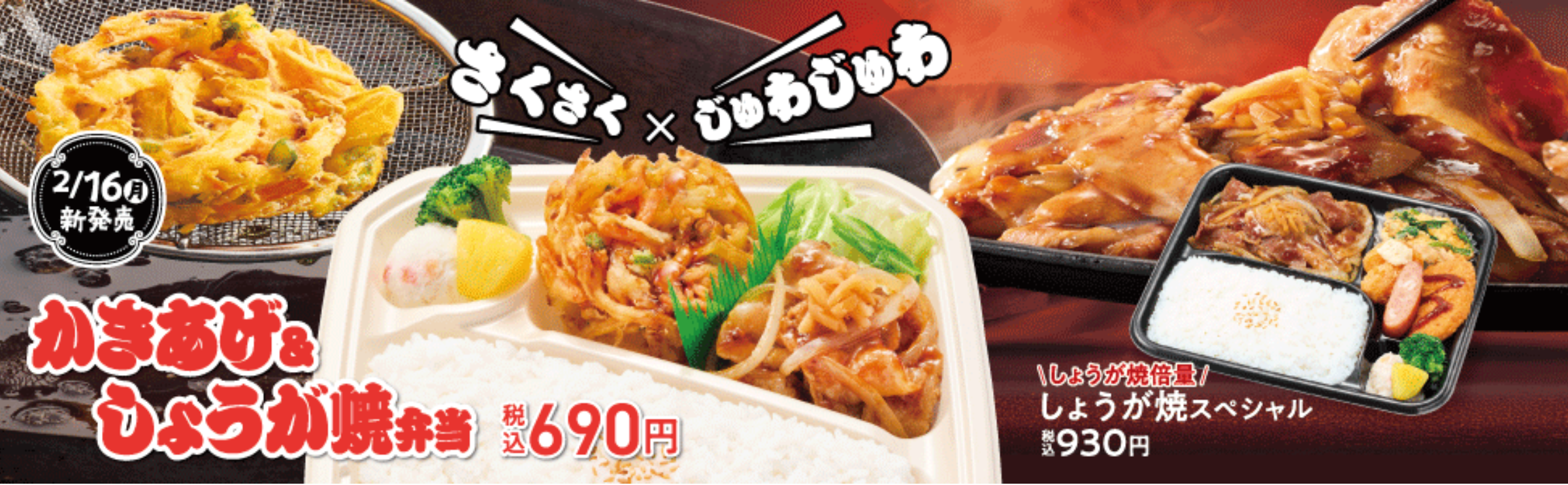 2月16日(月)「かきあげ&しょうが焼弁当」新発売!