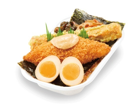 のり弁当に店内で丁寧に仕込んだ煮たまごをON!こだわりのお弁当をワンハンドでお手軽にお召し上がりください。(マヨしょうゆを+10円(税込)「タルタルソース」に変更できます。「タルタルソース」は白身フライにかけてご提供します。)