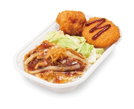お肉のボリュームがアップした人気のしょうが焼きに、コロッケと唐揚、キャベツが入ったボリュームのあるお弁当です。