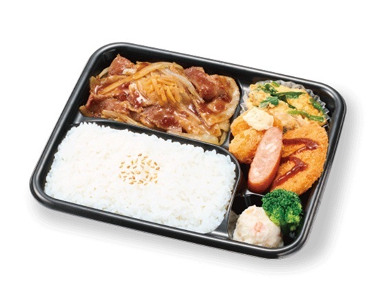 圧巻のボリュームと満足感!スペシャルシリーズがリニューアル! お肉のボリュームがアップした人気のしょうが焼に、ポップコーンシュリンプ、ニラ玉、コロッケ、ウインナーなどが入ったボリューム満点のお弁当です。 ●しょうが焼の分量はしょうが焼弁当の倍量です。