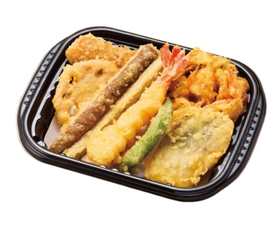 海老やかきあげ、さわら、ごぼう2本、れんこん、スナックえんどう、ちくわ磯辺の7種の天ぷらが入った春の天ぷら盛合せです。